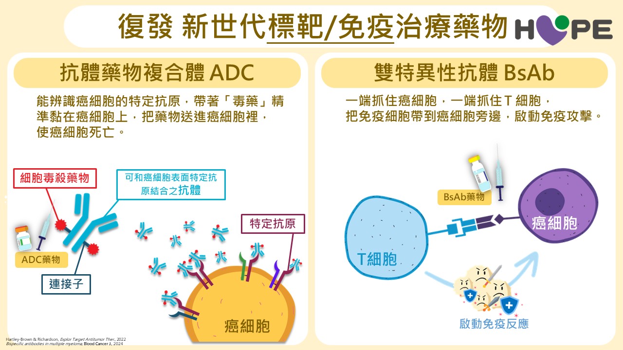 葉士芃醫師表示,這種「精準投遞」的治療方式,不僅能有效消滅癌細胞,也能減少對正常細胞的影響。目前 ADC 療法多應用於多發性骨髓瘤復發後的患者,當傳統治療效果有限時,能為病友提供新的治療選擇與希望。
