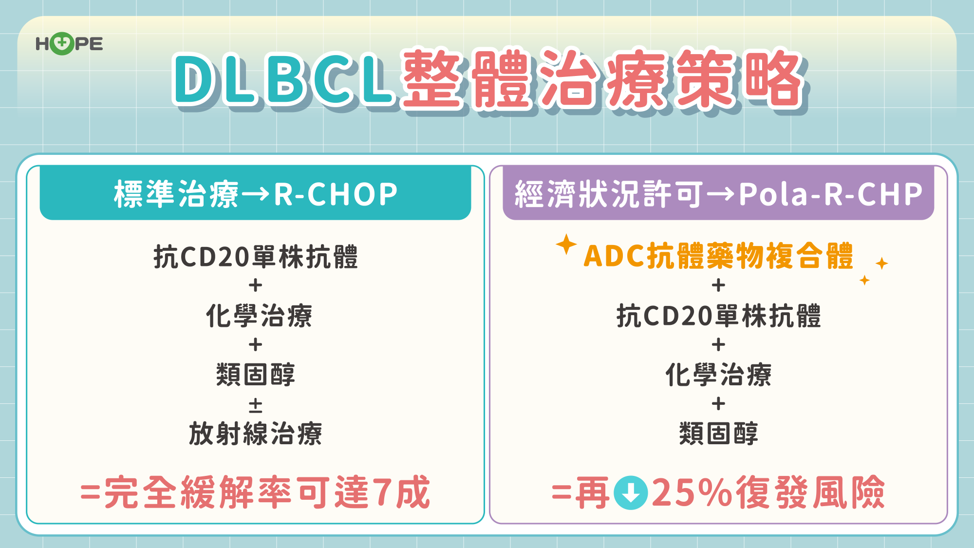 第一線治療:R-CHOP為主 Pola-R-CHP降低復發風險