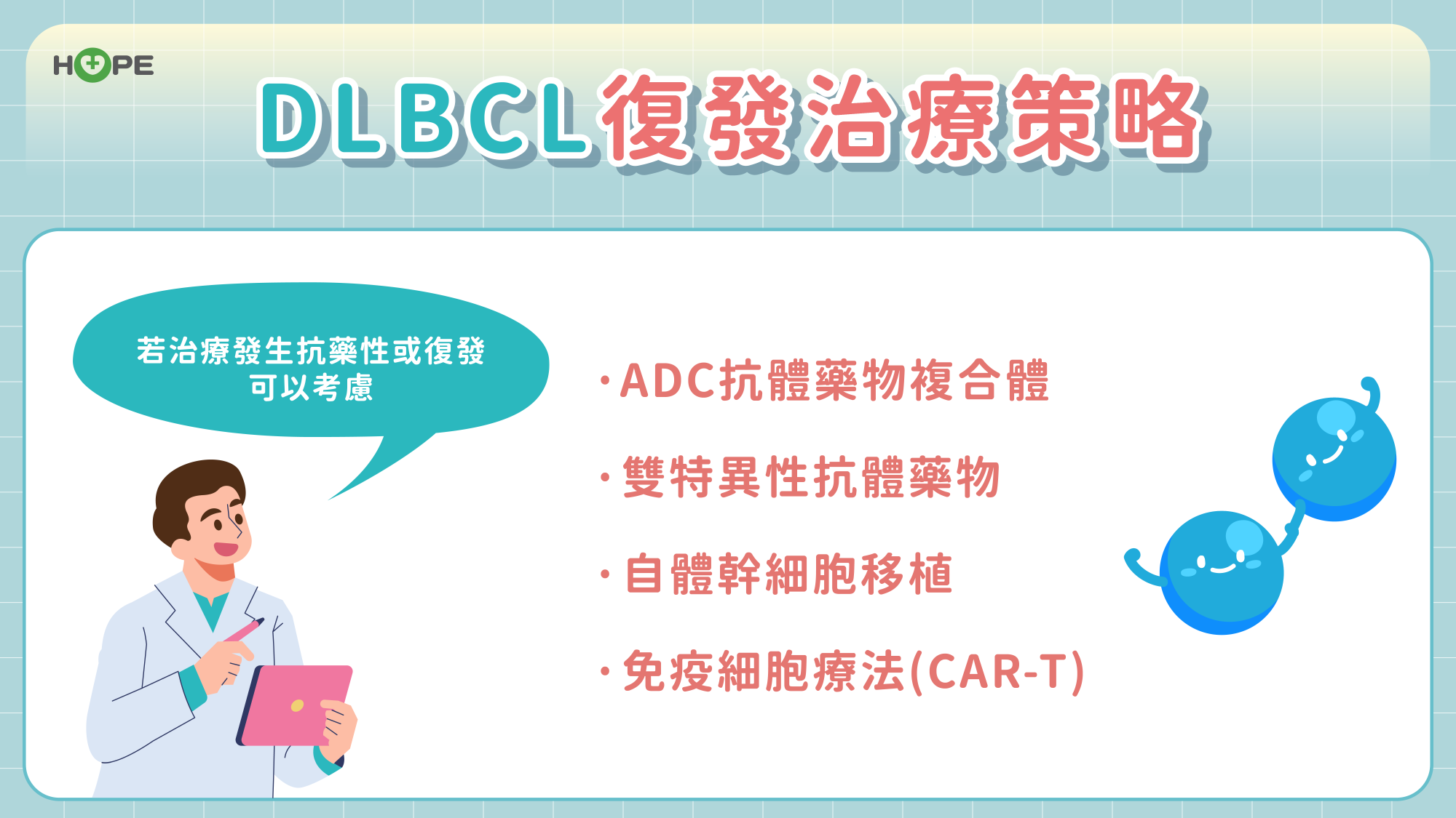 瀰漫性大B細胞淋巴癌(DLBCL)是最常見的淋巴癌類型,雖然屬於高惡性度癌症,但醫學進展讓六到七成病人在第一次治療後就能痊癒,真正擺脫疾病。不過,一旦復發,治癒率往往掉到一到兩成。過去,病人常把「復發」視為沒救,如今情況已經不同,新型藥物持續問世,讓病人有更多機會翻轉命運。