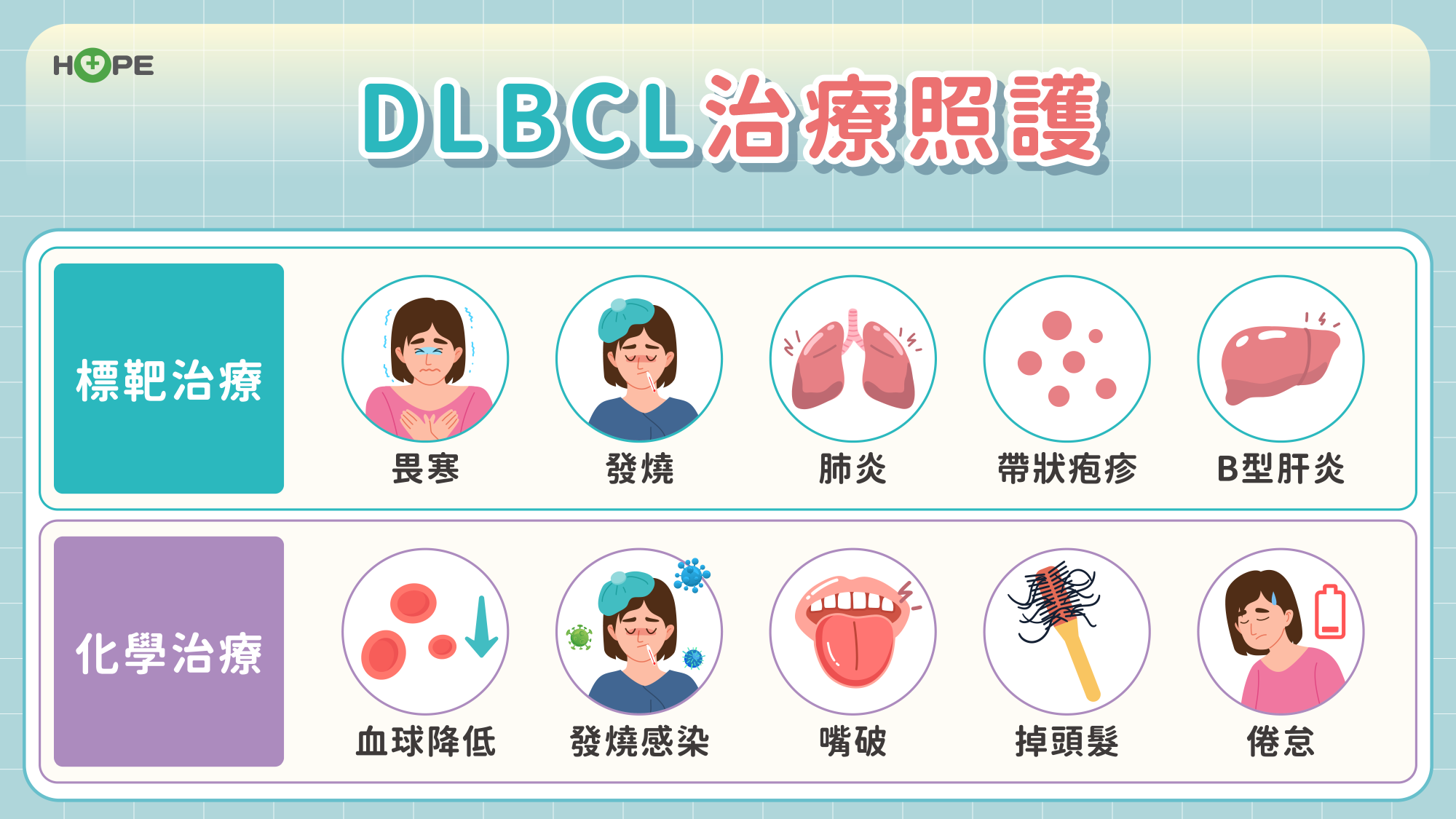 不同治療帶來的副作用各不相同。傳統化療常見血球降低、感染風險上升、口腔潰瘍、掉髮等問題;ADC 藥物可能造成手腳末端感覺麻木、腸胃蠕動異常;CAR-T 與雙特異性抗體需留意「細胞激素釋放症候群」,病人可能出現發燒、呼吸急促、短暫語言障礙,但大多在處理後可以恢復。雙特異性抗體副作用相對較輕,不過會出現免疫力疲勞,免疫力會下降,須警覺感染。