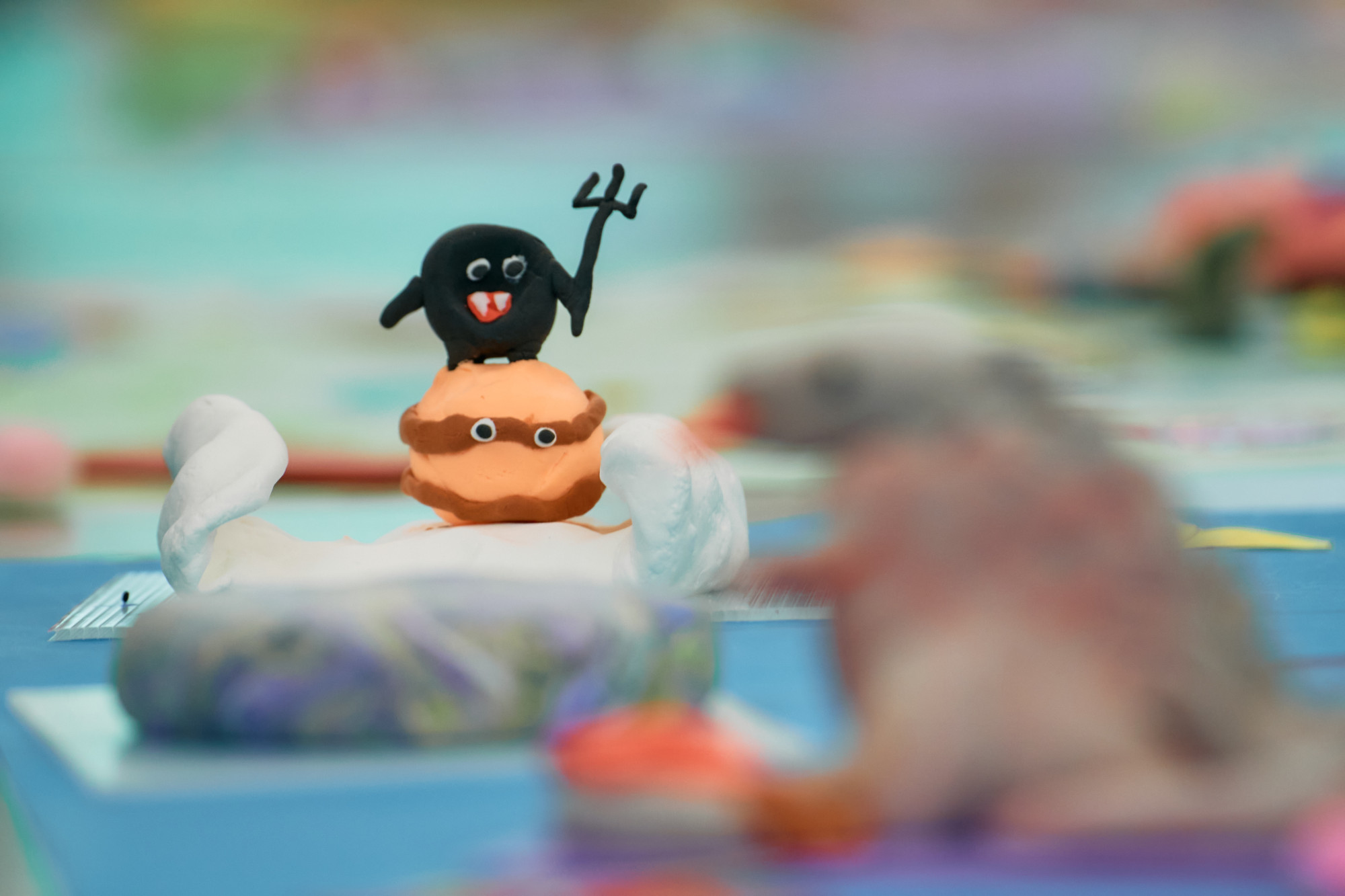 會場裡看到輕黏土被揉捏、塑形,一個個紅色的不規則團塊、黑色的鋸齒狀物、五顏六色的糖衣包裹、猙獰的怪獸……這些具象化的「癌樣子」,是每個人內心深處對疾病的投射,更是心靈的一塊真實切片。